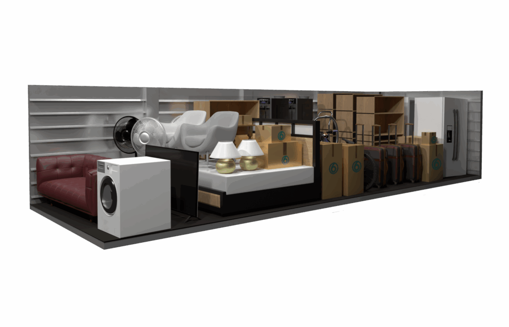 Comparable to a one-car garage—fits the contents of a 3–4 bedroom home or vehicle storage.